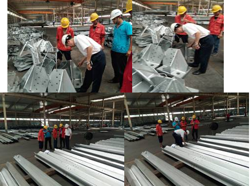 在了解2017年生產(chǎn)質(zhì)量控制總體概況后,檢查人員從目前在加工工程中,隨機(jī)選取塔型,現(xiàn)場對白件成品鋅層厚度、加工規(guī)格、孔徑等加工精度進(jìn)行測量,檢查塔腳焊接外形;根據(jù)實(shí)際測量和檢查結(jié)果,對我公司鍍鋅質(zhì)量、焊接質(zhì)量、加工精度控制均表示高度認(rèn)可,對我公司質(zhì)量管理水平給予充分肯定。